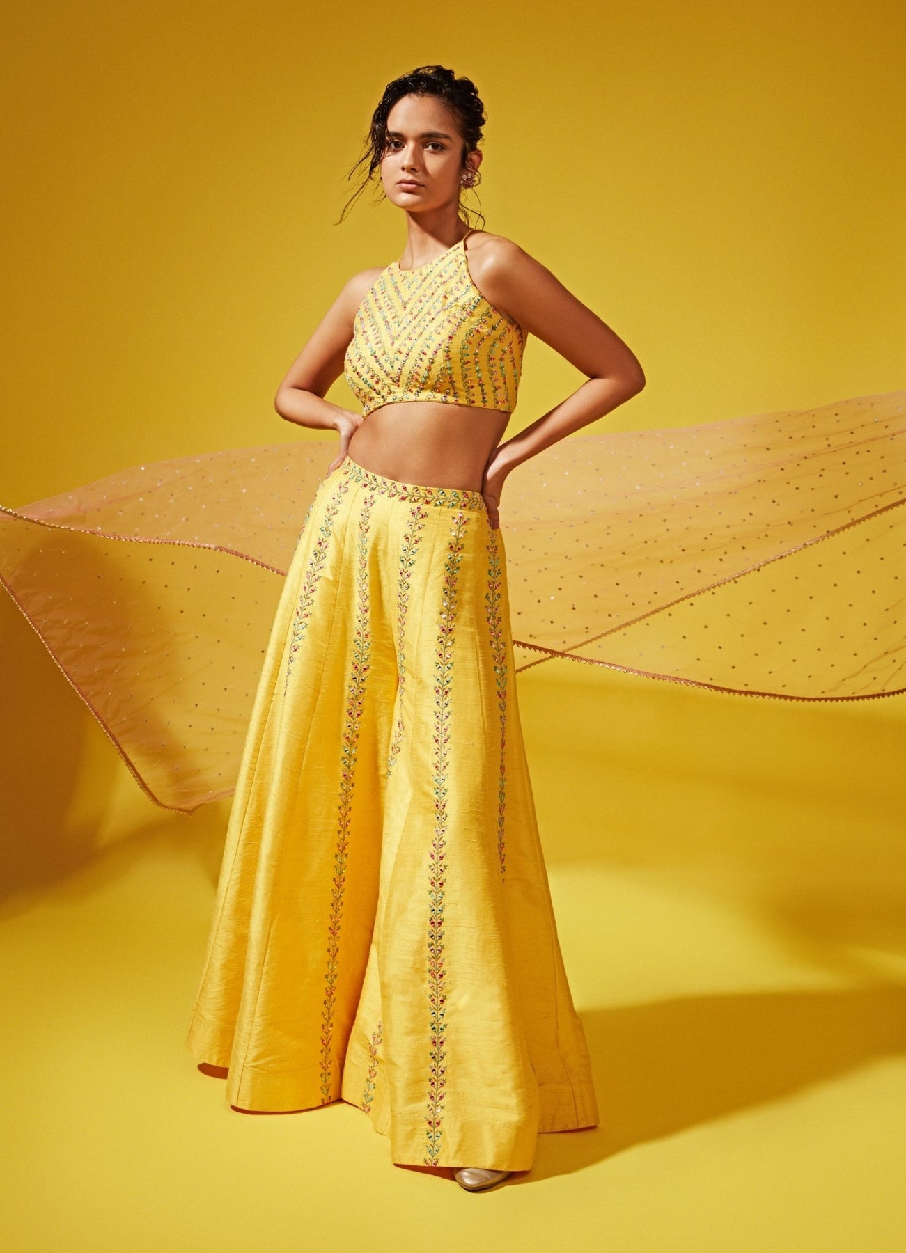 Gina Yellow Pallazo Set Chamee n Palak - Fabilicious Fashion