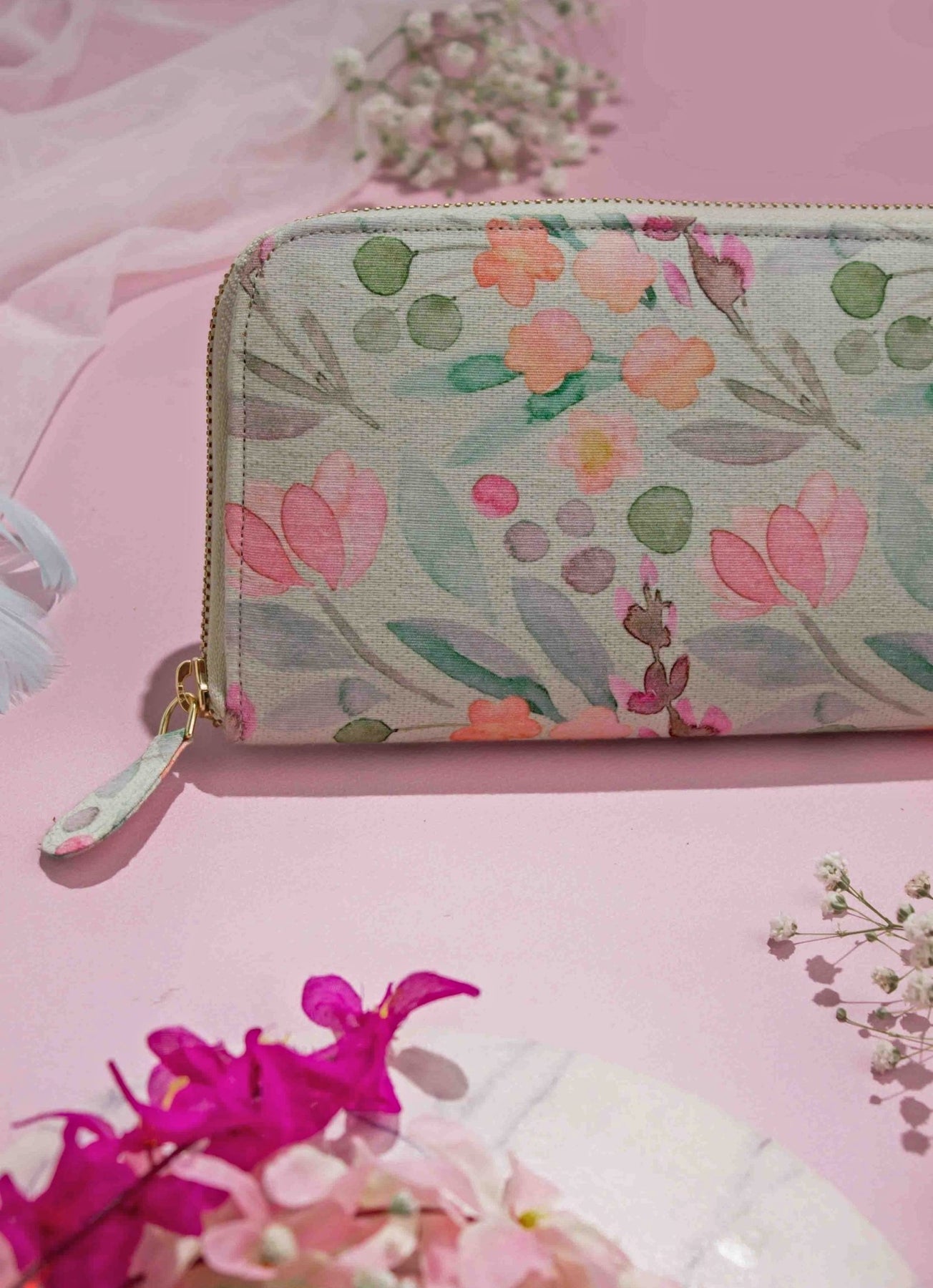 Green Printed Zip Wallet AMYRA - Fabilicious Fashion
