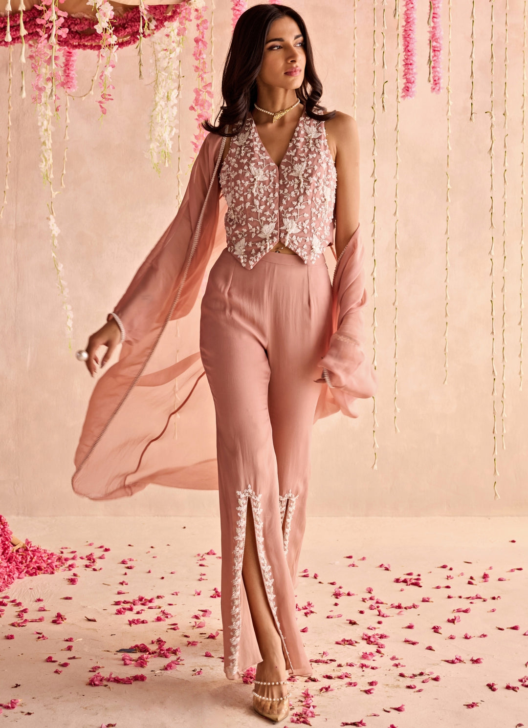 Blush Pink And Blue Pastel Hued Embroidered Lehenga Set