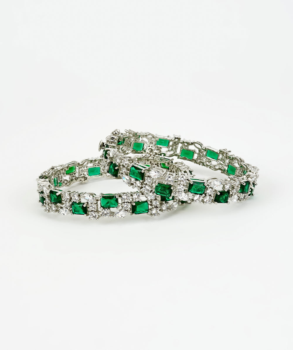 Silver Plated Green Emeralds And Zircon Stones Gold Plated Bangles