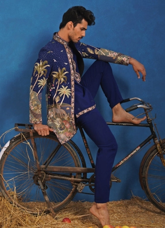 Blue Thread Embroidered Kurta Patiala Pants Set