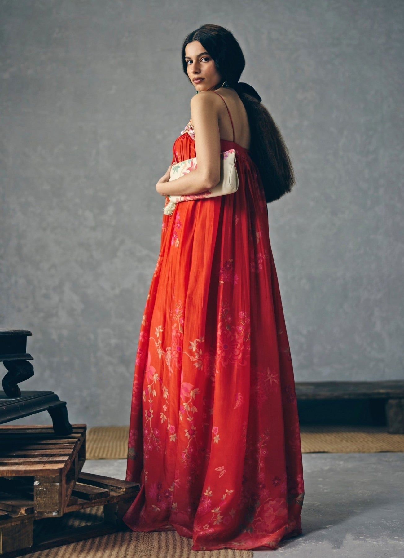 Discover contemporary glamour in Red Printed Blend Flared Jumpsuit that feels feminine, fluid and effortlessly modern. Crafted in a silk blend, the jumpsuit opens into a beautifully flared lower half that gives it the charm of a dress while keeping the ease of a one-piece. Its striking print adds festive energy.