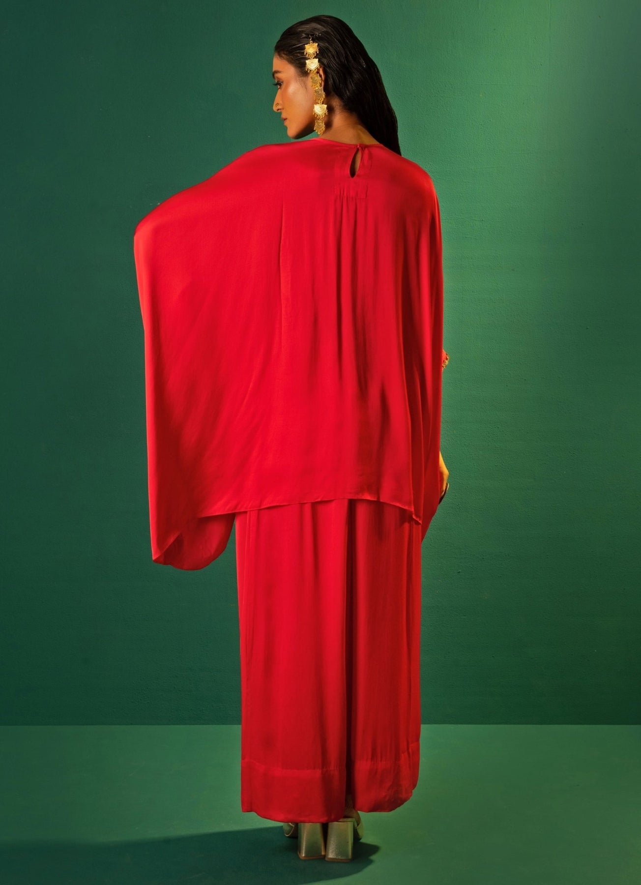 Red Embroidered Satin Tunic Co - Ord Set Prahnaaya - Fabilicious Fashion