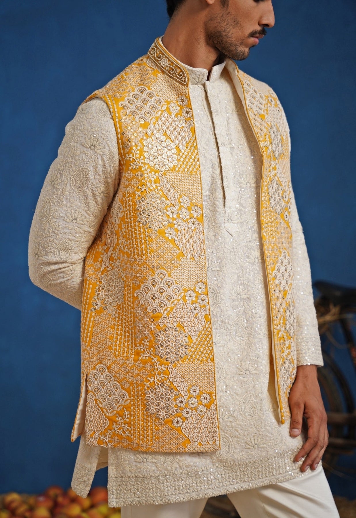 Perfect Nehru Jacket Set for Wedding family for Haldi Ceremony.