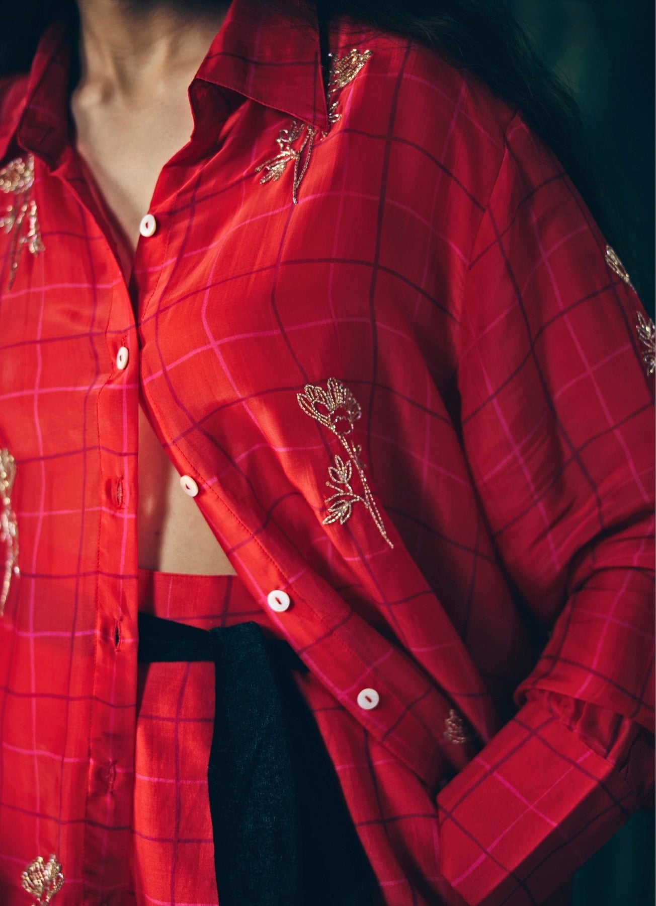Red Printed Silk Co - Ord Set Paulmi and Harsh X Ease - Fabilicious Fashion
