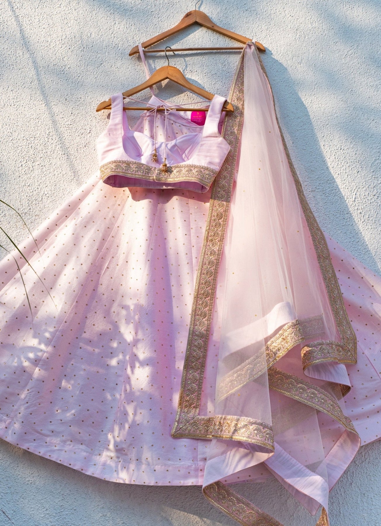 Pastel Pink Raw Silk Lehenga Set Anisha Shetty - Fabilicious Fashion