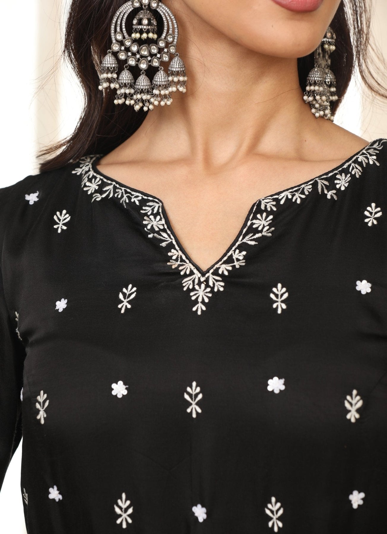 Black Embroidered Satin Kurta Salwar Set Esha Koul - Fabilicious Fashion