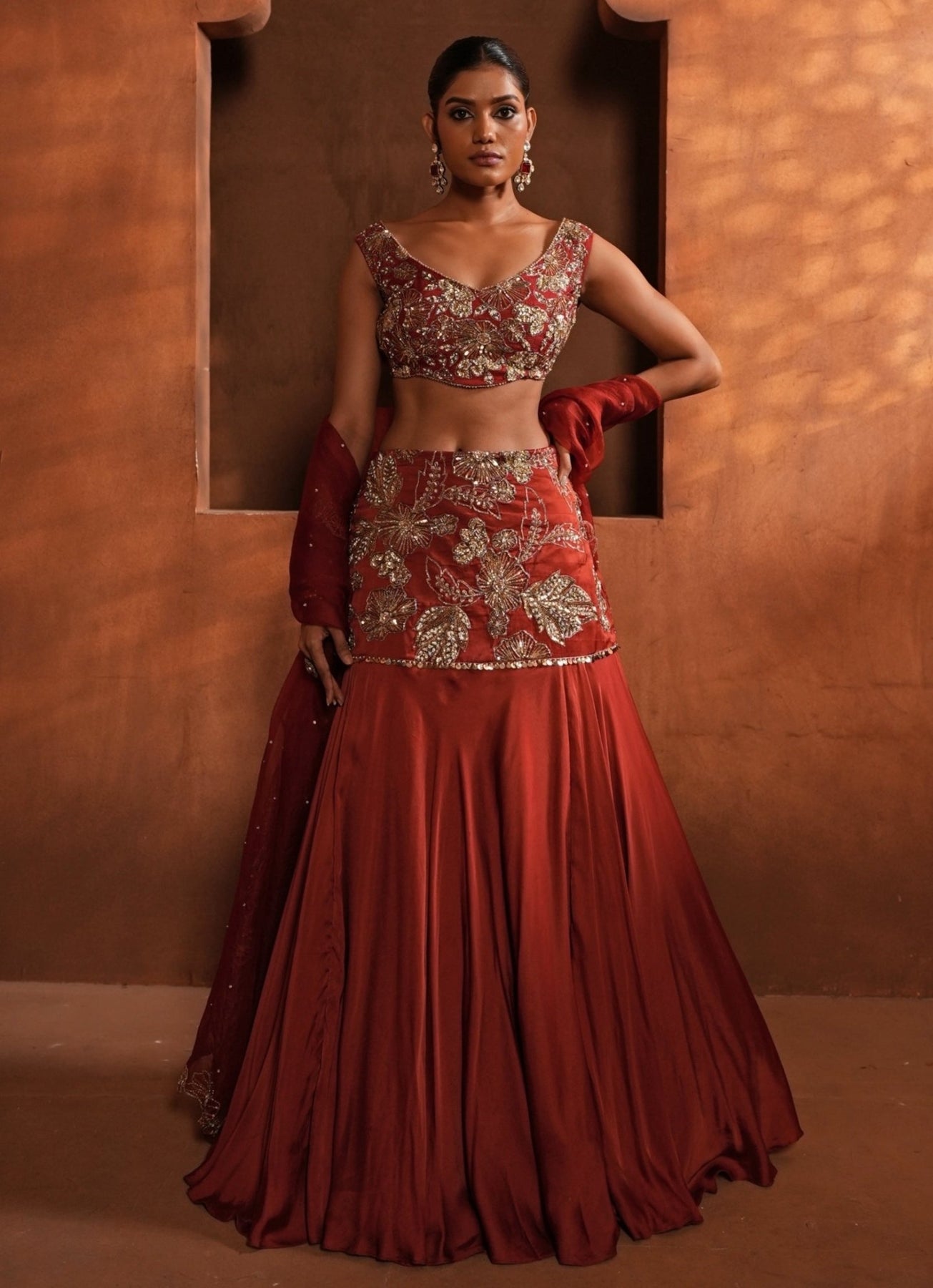 Burnt Orange Silk Mermaid Lehenga