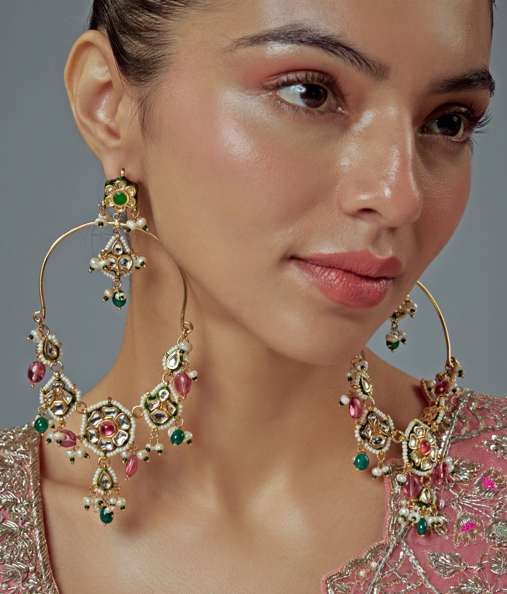 Gold Plated Multi Stone Kundan and Polki Chandbalis