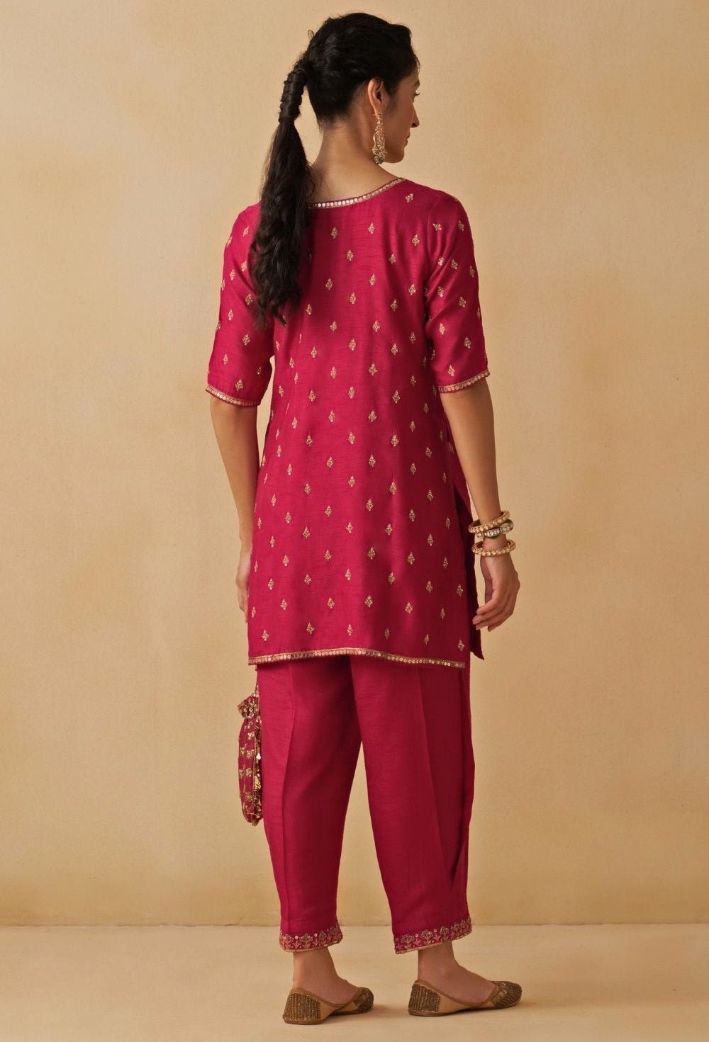 Hot Pink Embroidered Silk Kurta Salwar Set