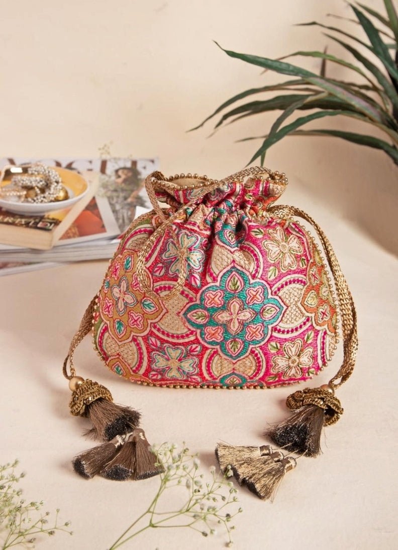 Cream Embroidered Potli AMYRA - Fabilicious Fashion