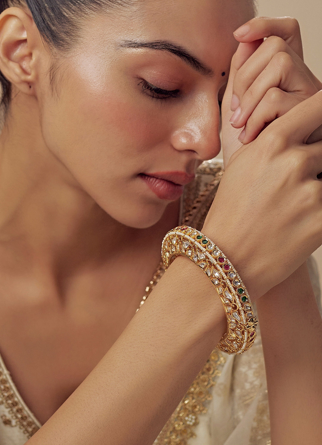 White Kundan And Polki Gold Plated Bangles