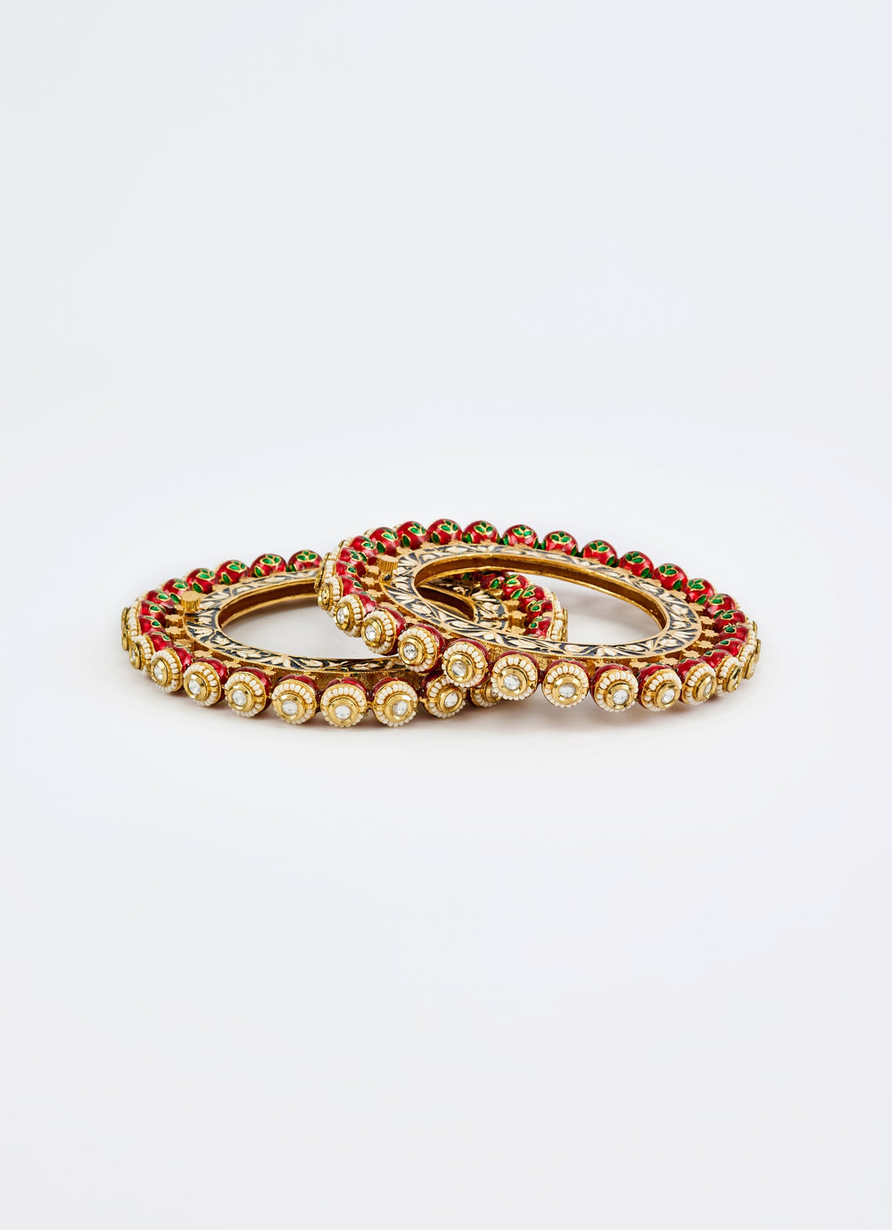 Red Kundan And Polki Gold Plated Bangles