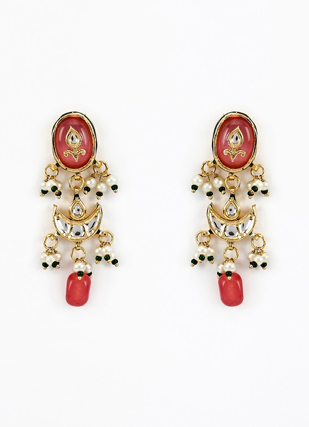 Gold Plated Green And Red Beaded Choker Necklace Set
