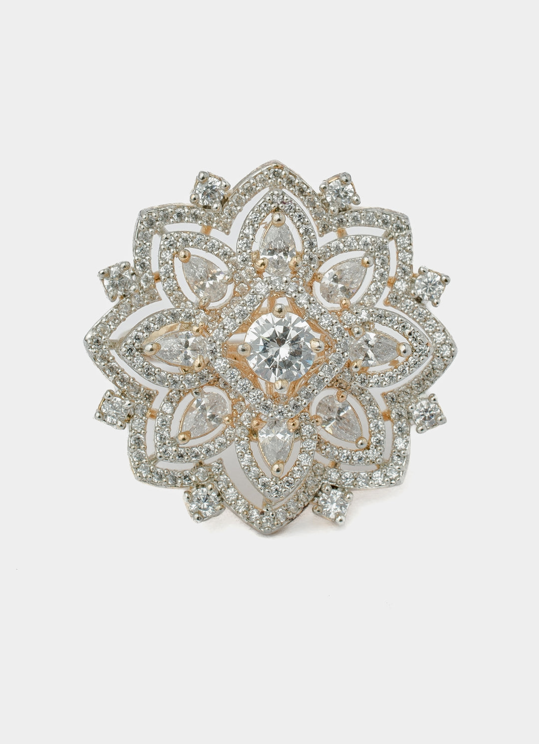 Gold Plated Multi Navratan Kundan And Polki Ring