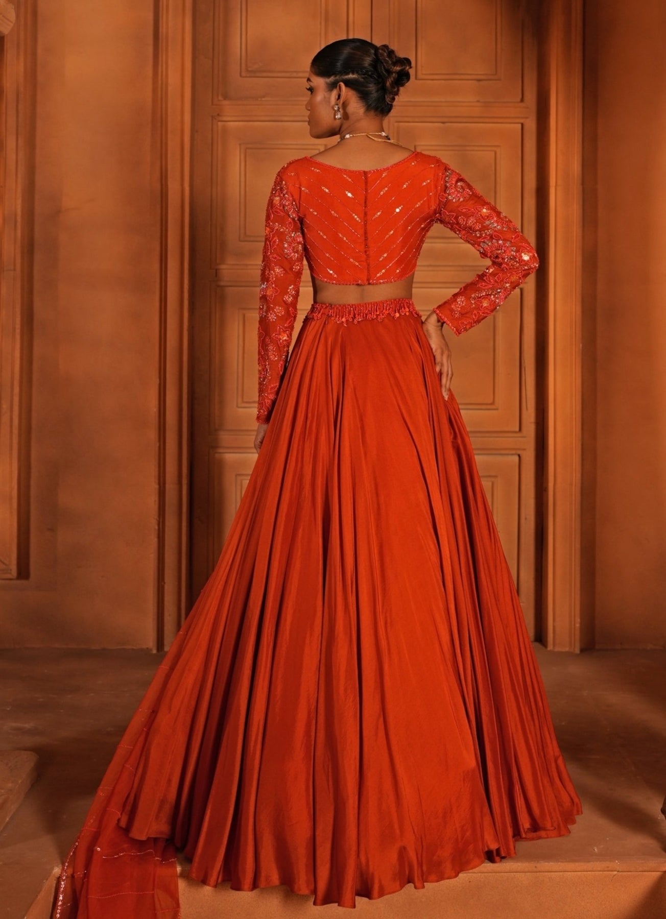 Orange Embroidered Silk Lehenga Enamour by Radha - Fabilicious Fashion