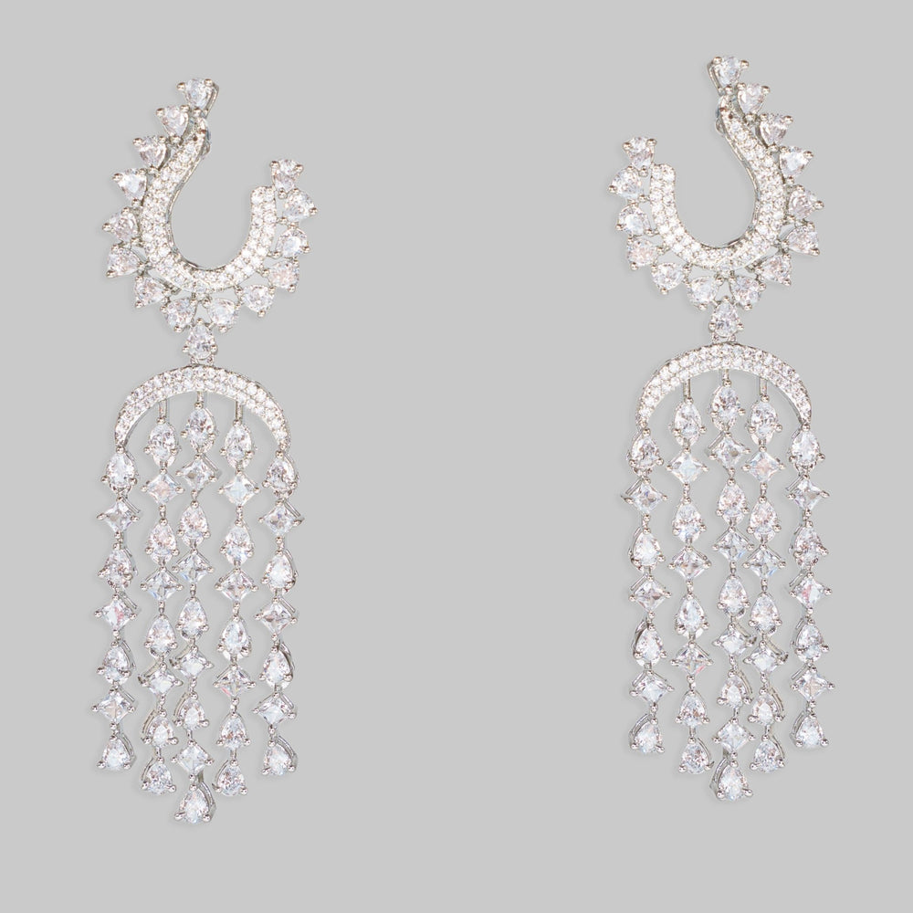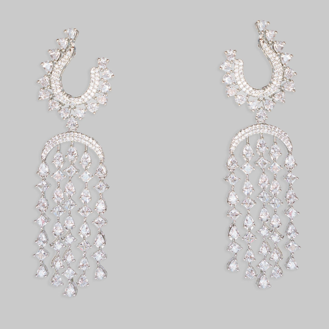 Elevate your accessory game with the elegant Diamond Dangler Earrings. Crafted from high-quality mixed metal and adorned with semi-precious diamonds, they feature a classy white finish that sparkles with faux diamonds. Perfect for special occasions or everyday glamour.
