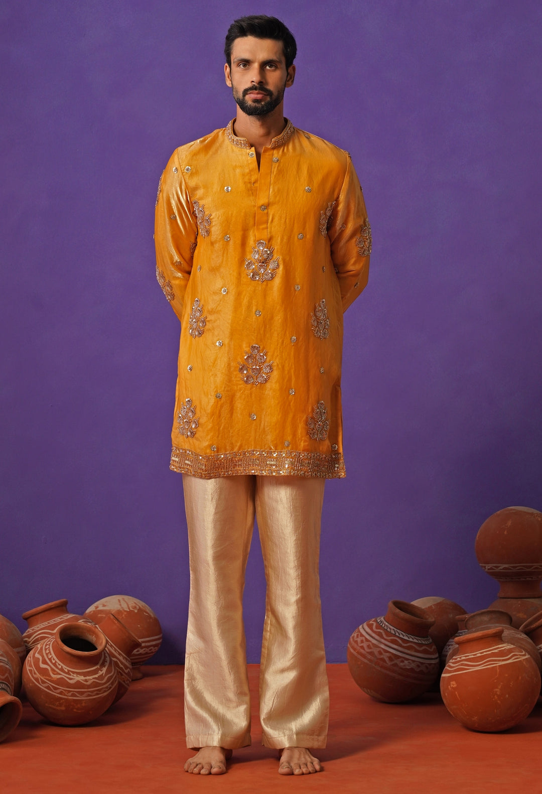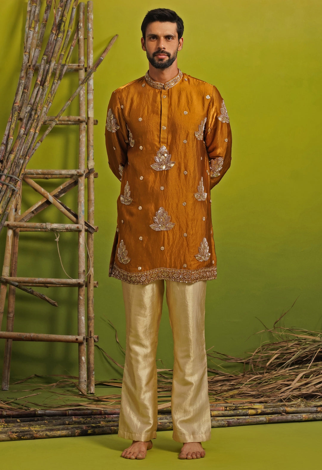 Golden Silk Short Kurta Set