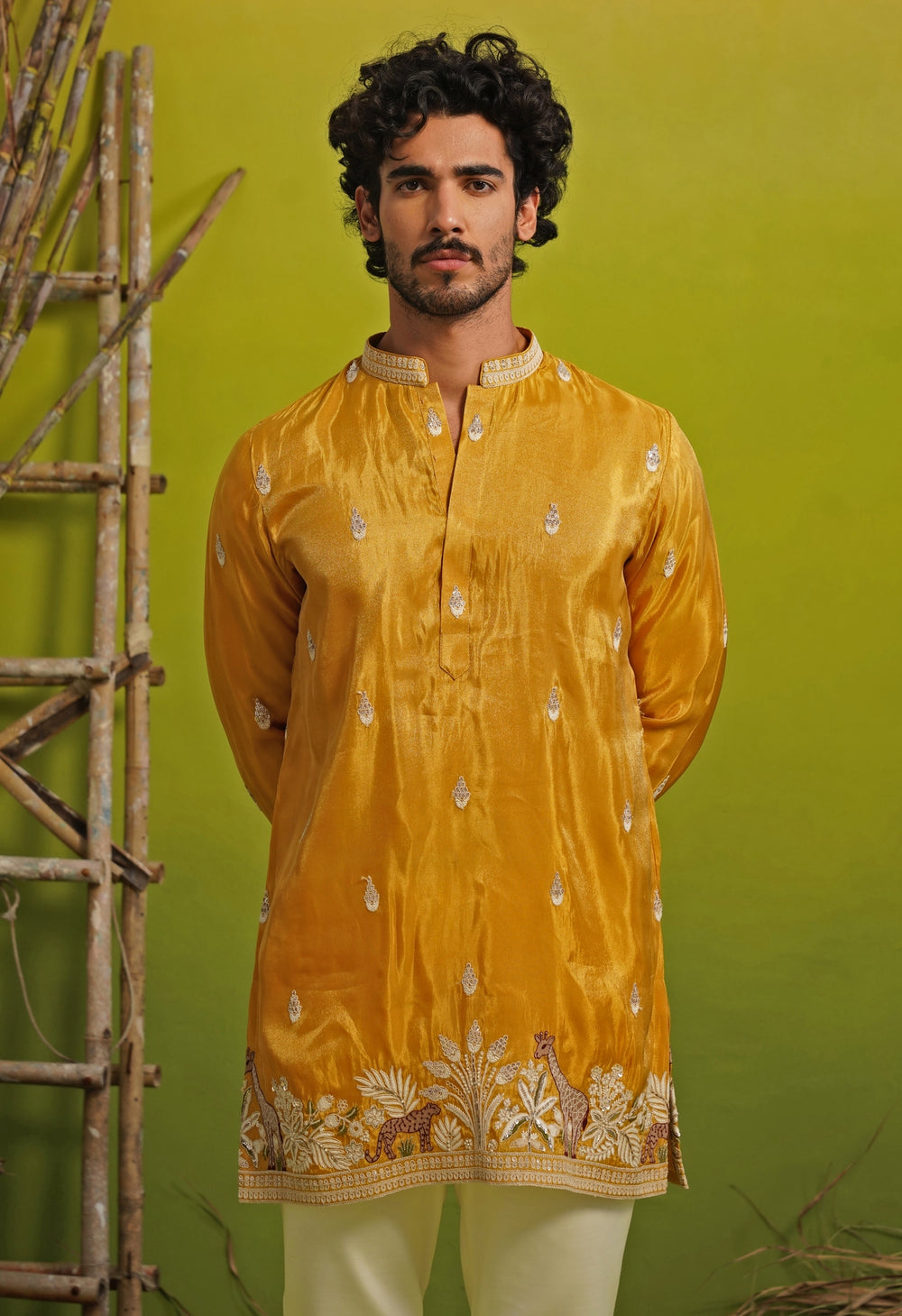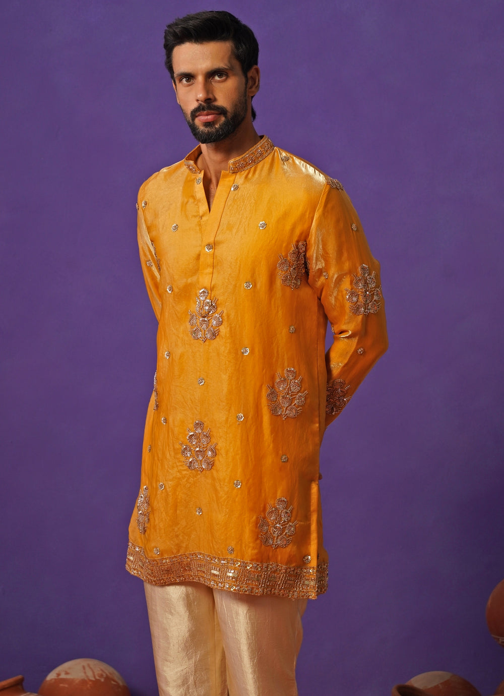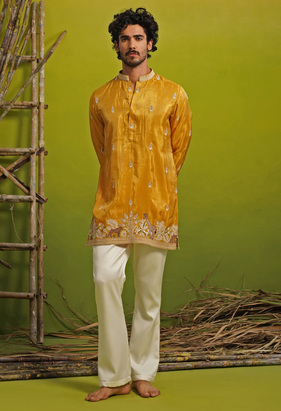 Haldi Yellow Tissue Silk Short Kurta Set