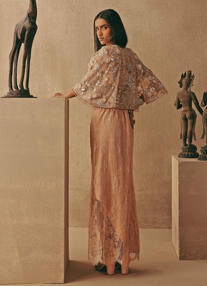 Blush Pink Lace Pick Up Skirt Set With Jacket Twenty Nine - Fabilicious Fashion