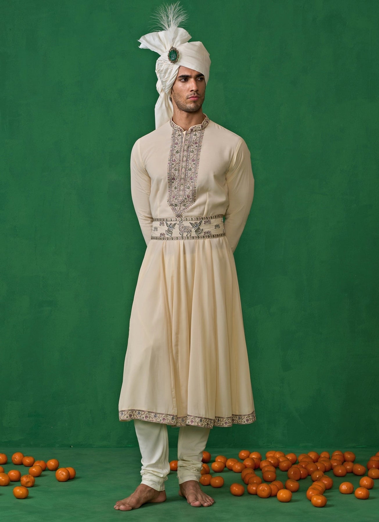 Composition : Sherwani, Anarkali, Churidar, Dupatta, Belt And Safa(Turban) FABRIC - Georgette