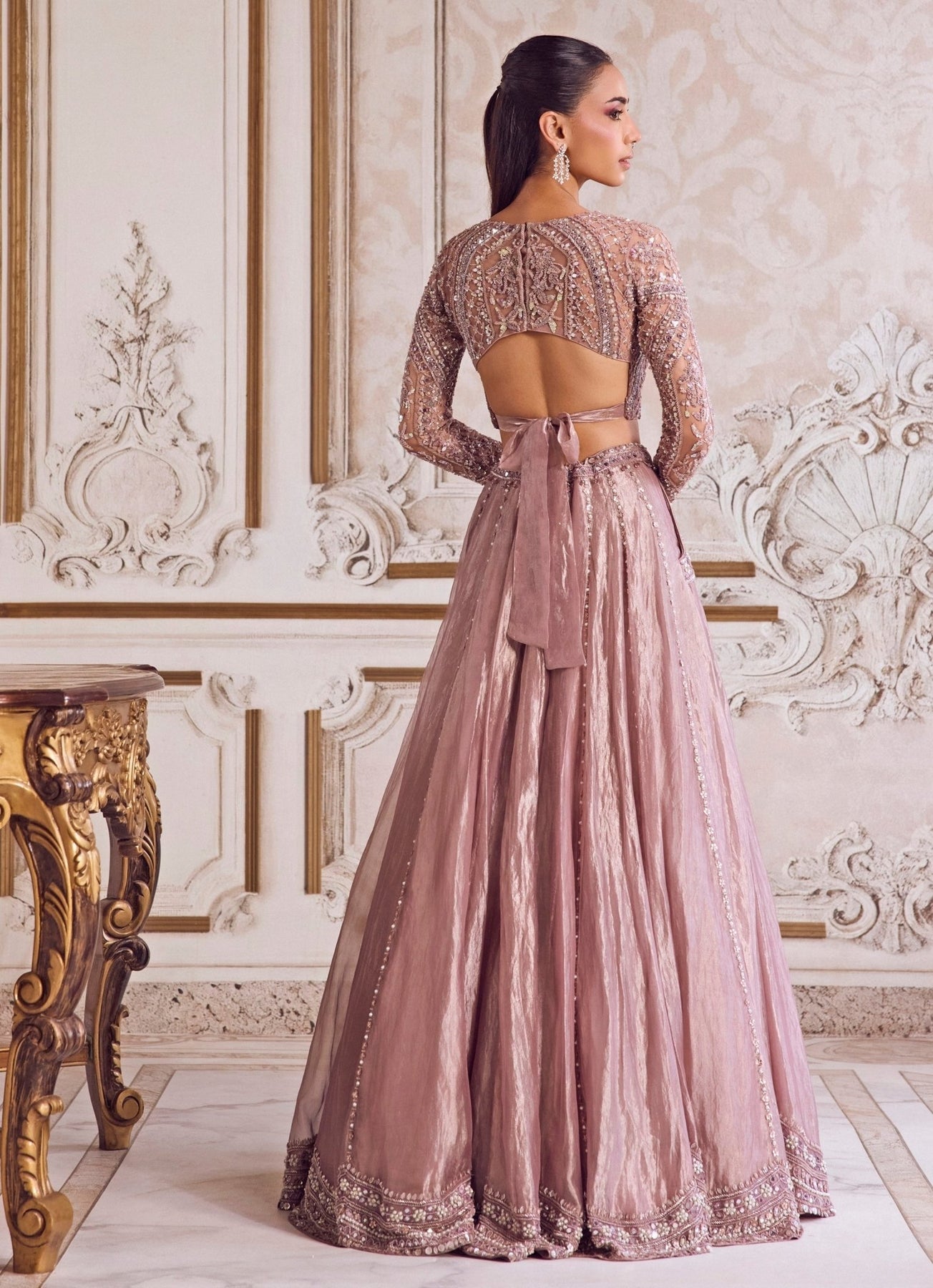 Champagne Lilac Tissue Lehenga Set