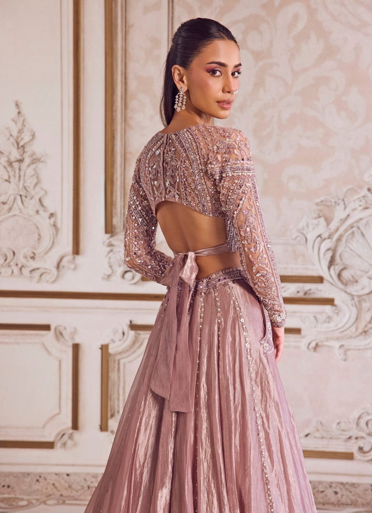 Champagne Lilac Tissue Lehenga Set Sanya Gulati - Fabilicious Fashion