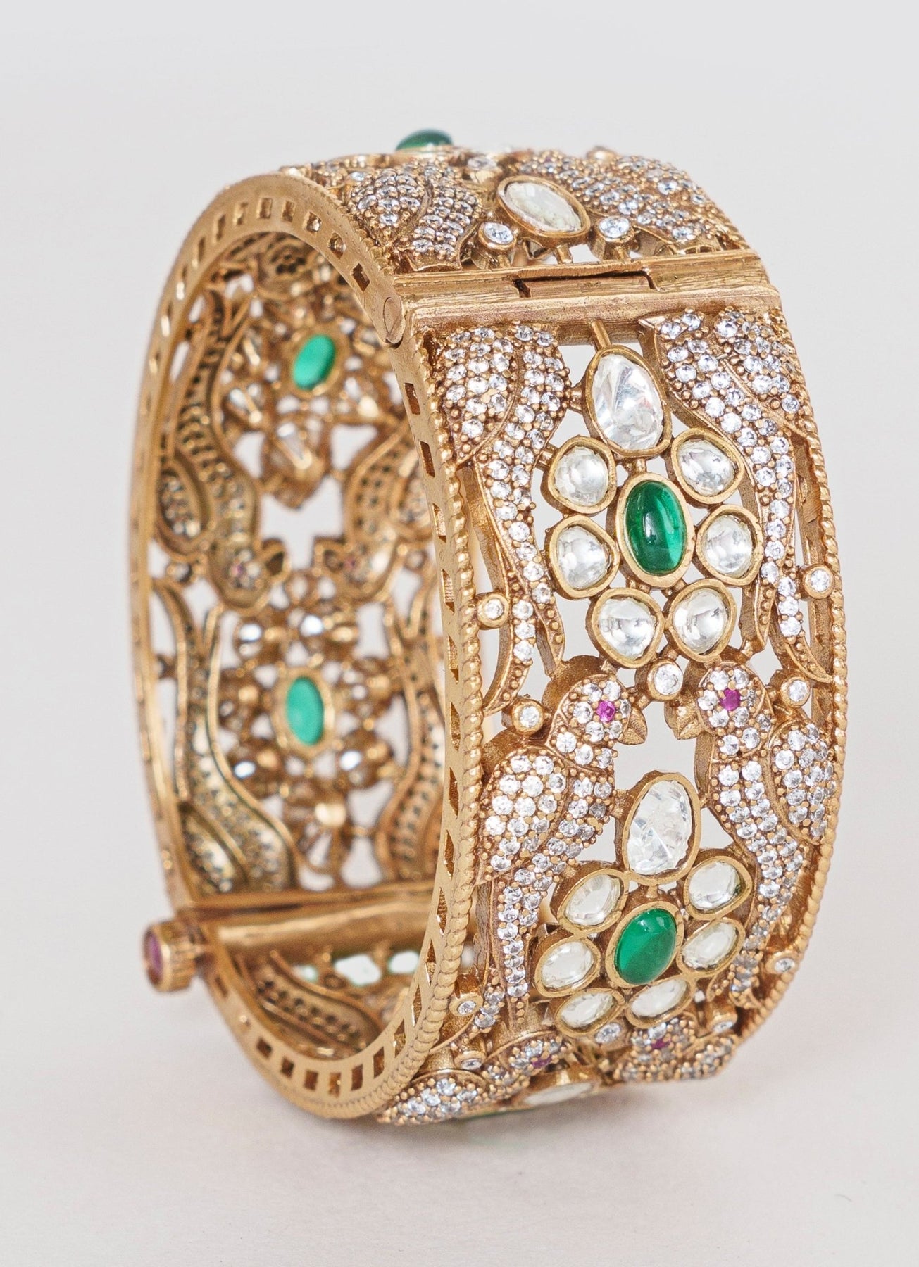 Gold Finish Green Stone Antique Kadas Zevar By Geeta - Fabilicious Fashion