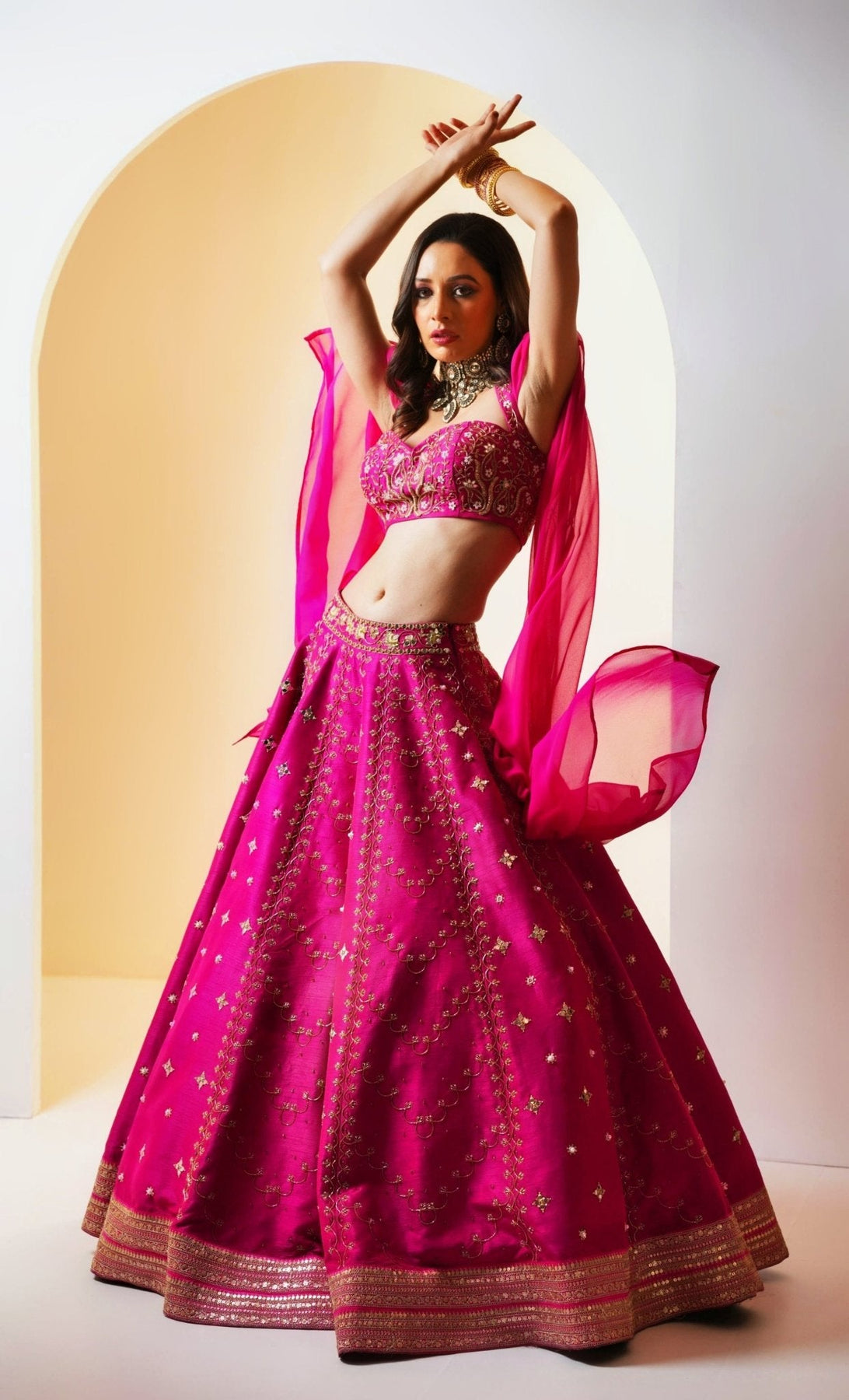 Rani Pink Kalidaar Silk Embellished Lehenga Set - Ready to Ship Rashika Sharma - Fabilicious Fashion