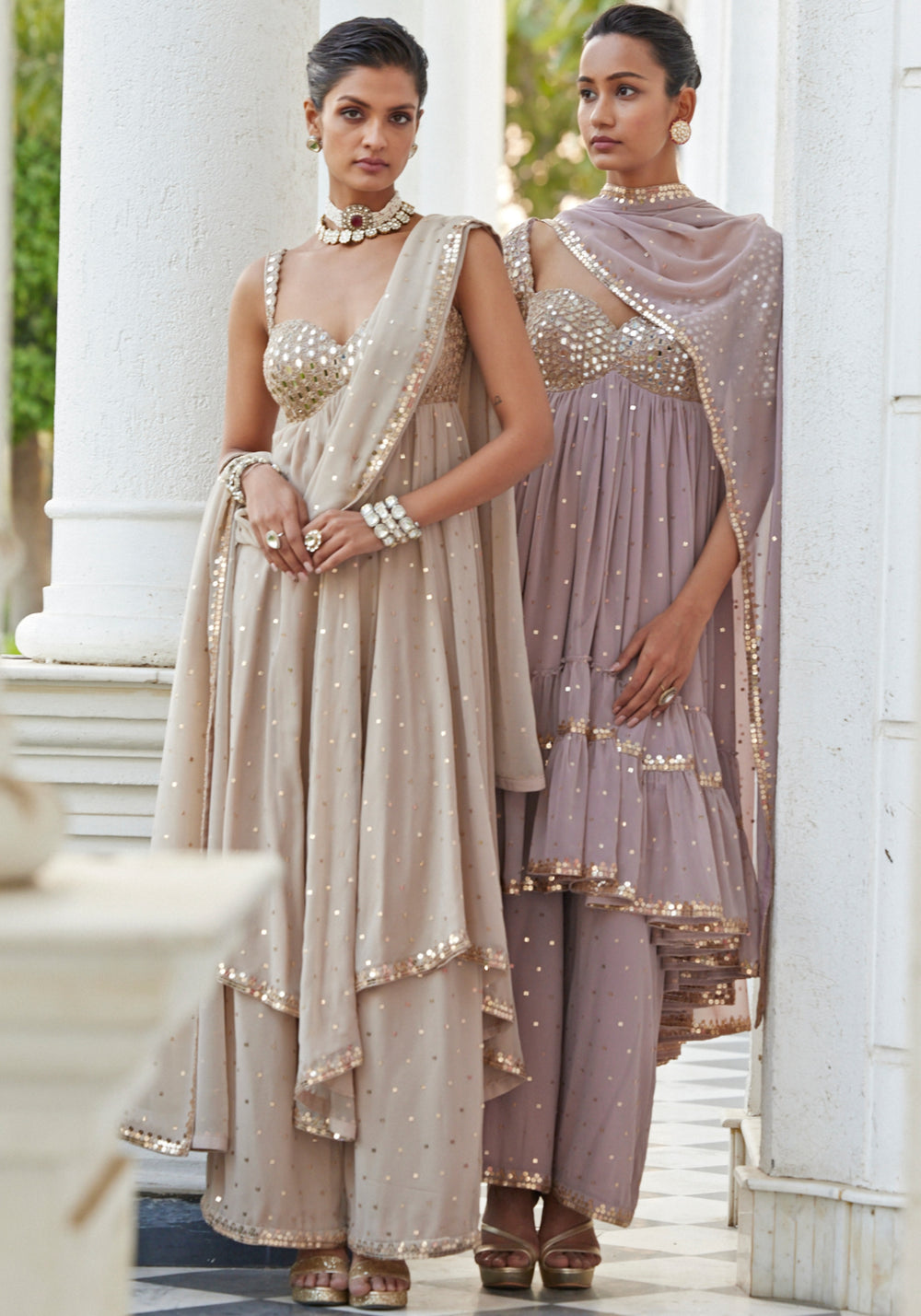 Dusty Pink And Grey Applique Lehenga With Sequinned Blouse