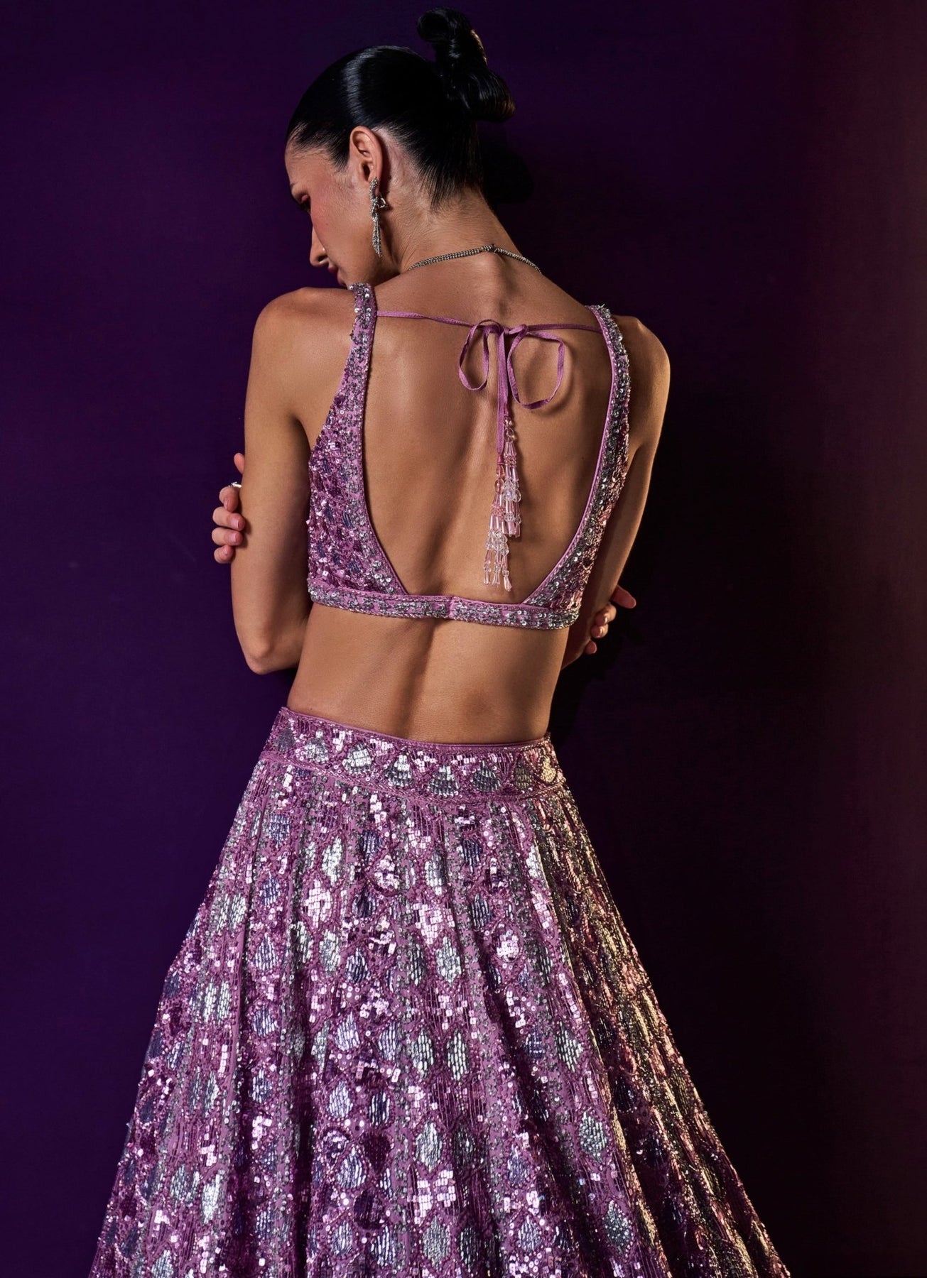 Lavender Sequins Embroidered Bridal Lehenga Set Angad Singh - Fabilicious Fashion