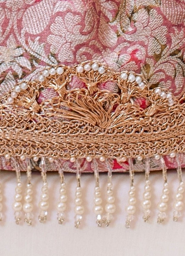 Pink Brocade Bucket Bag AMYRA - Fabilicious Fashion
