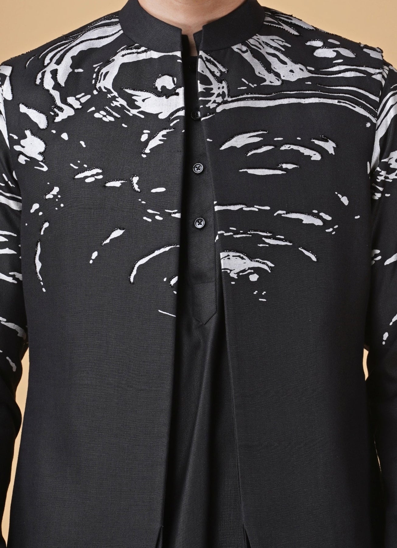 Black Printed Silk Kurta Set with Jacket Manish Nagdeo Men - Fabilicious Fashion