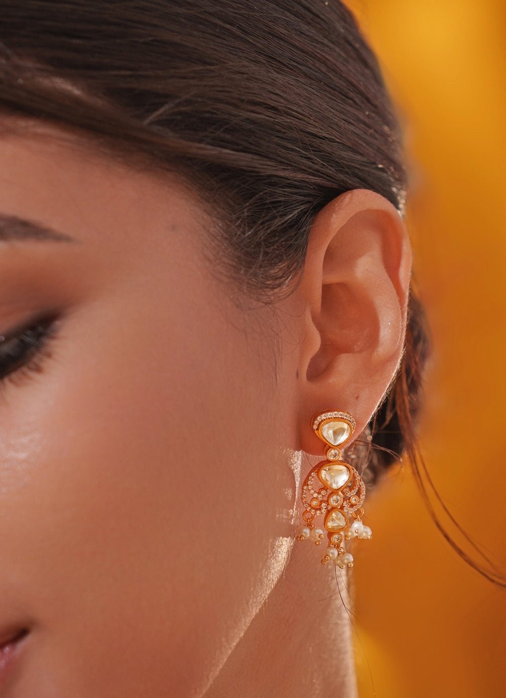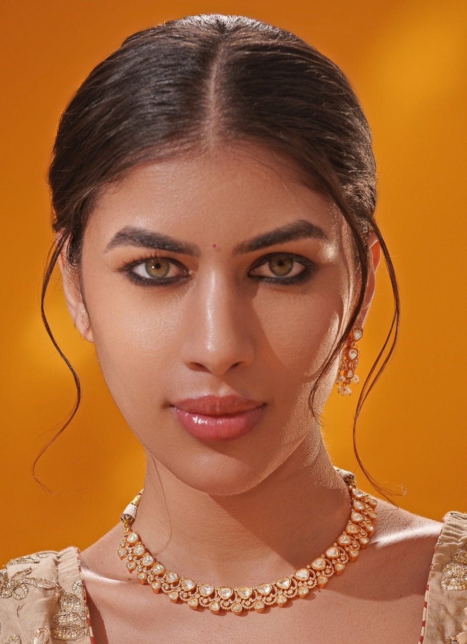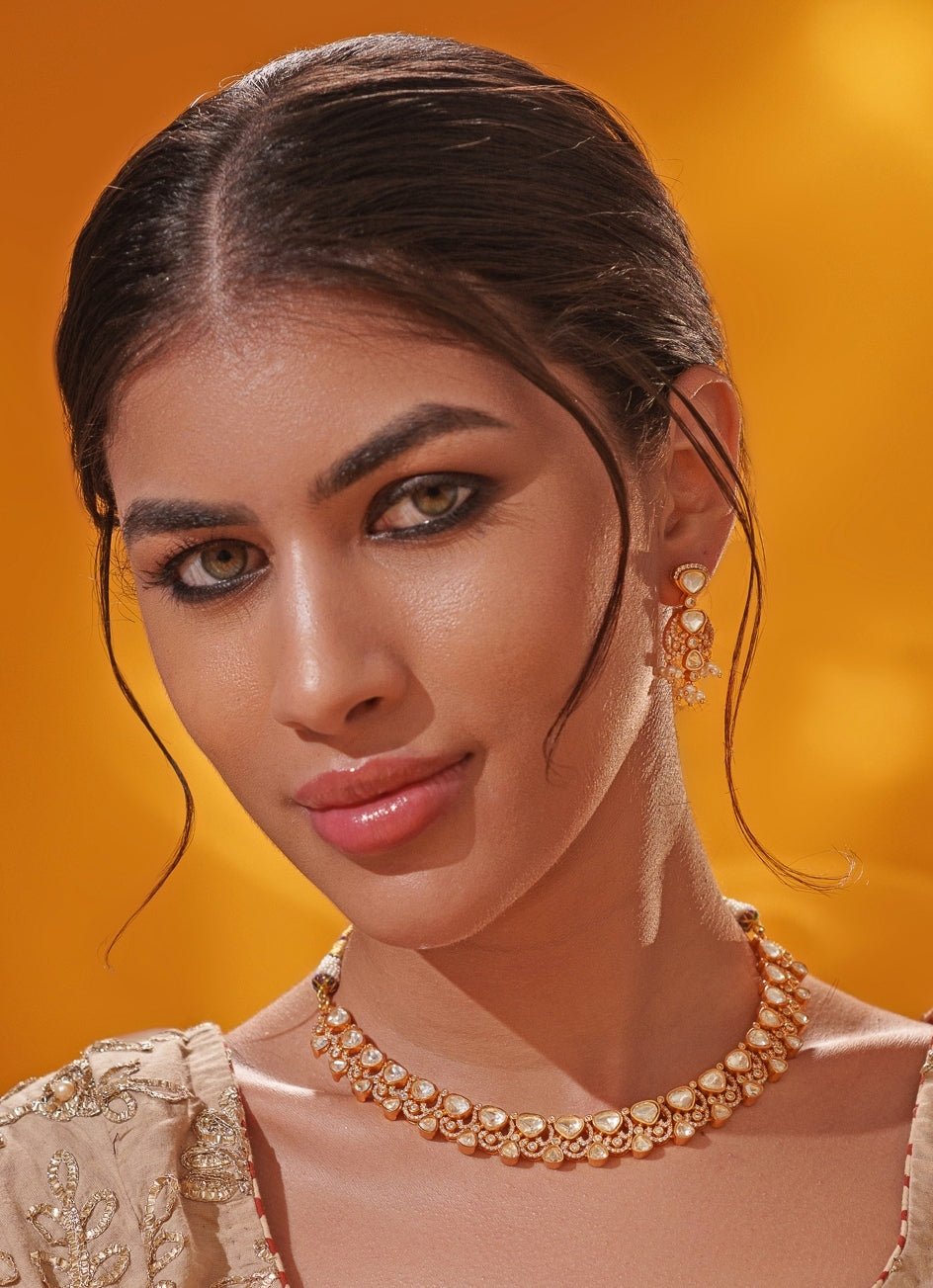 A masterpiece of refined elegance with brilliant moissanite stones set in an intricate, regal design. Ideal for grand occasions, it lends a touch of timeless sophistication for an Indo-Western look.