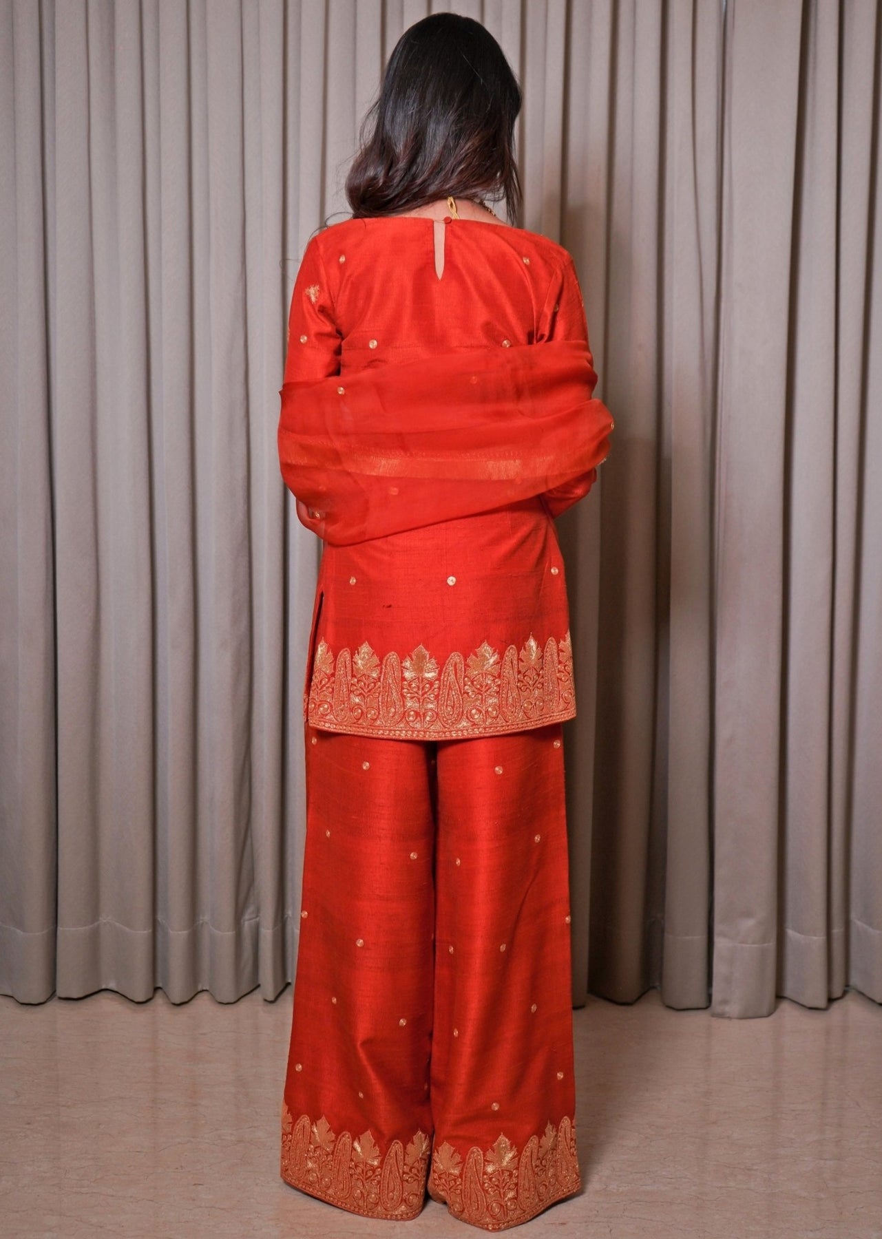 Rust Orange Silk Kurta Pants Set Esha Koul - Fabilicious Fashion
