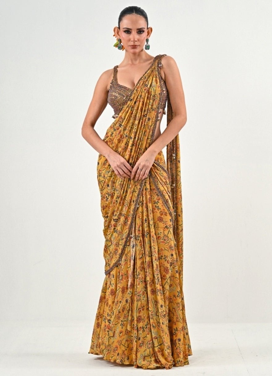 Perfect Pre-draped Saree for Wedding family for Haldi ceremony.