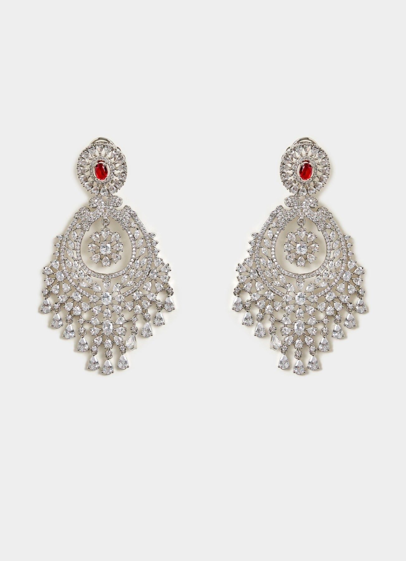 Red Onyx And Cubic Zircon Chandelier Earrings Vivinia By Vidhi Mehra - Fabilicious Fashion