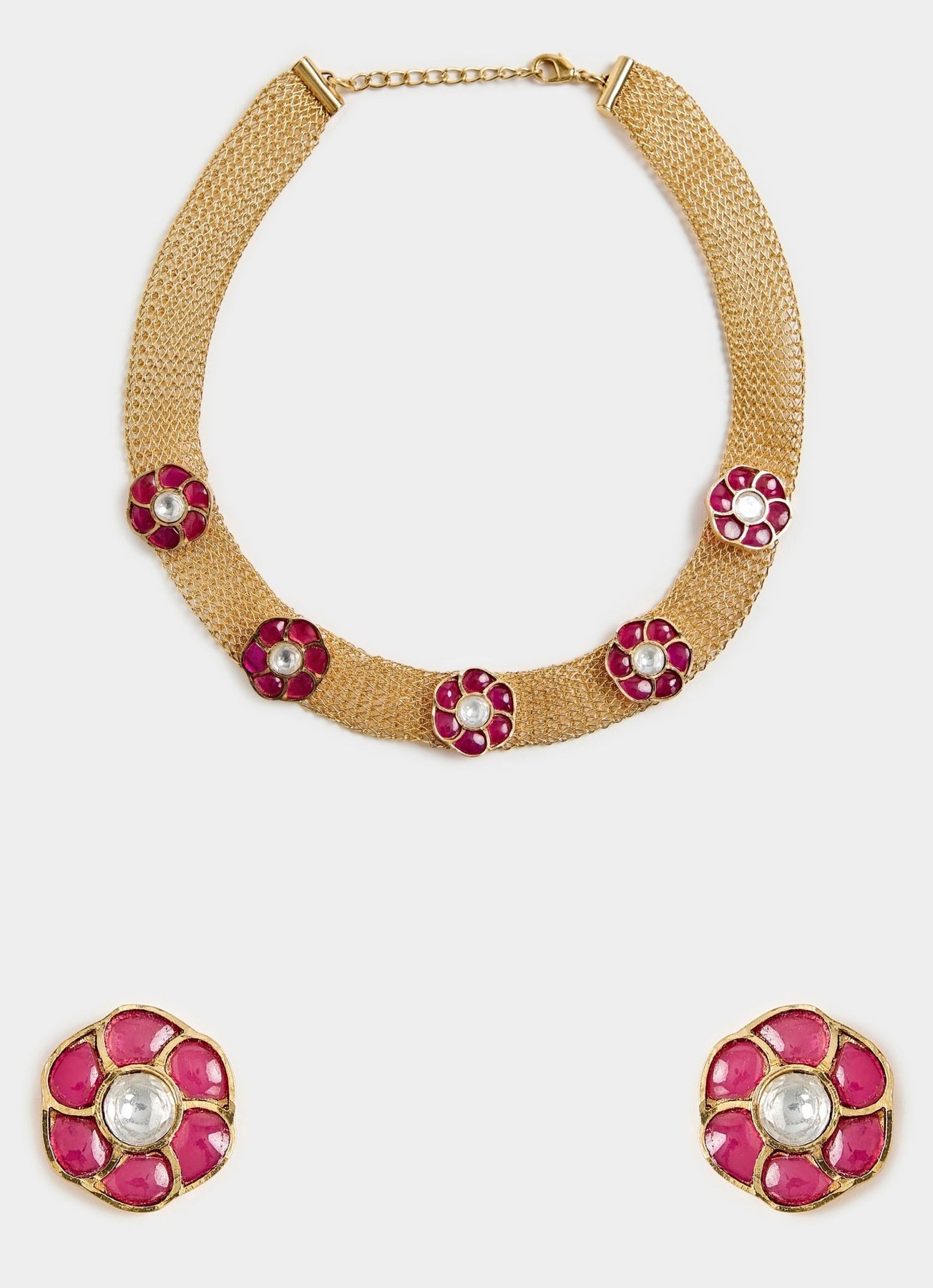Pink Stone Choker Necklace Set Vivinia By Vidhi Mehra - Fabilicious Fashion