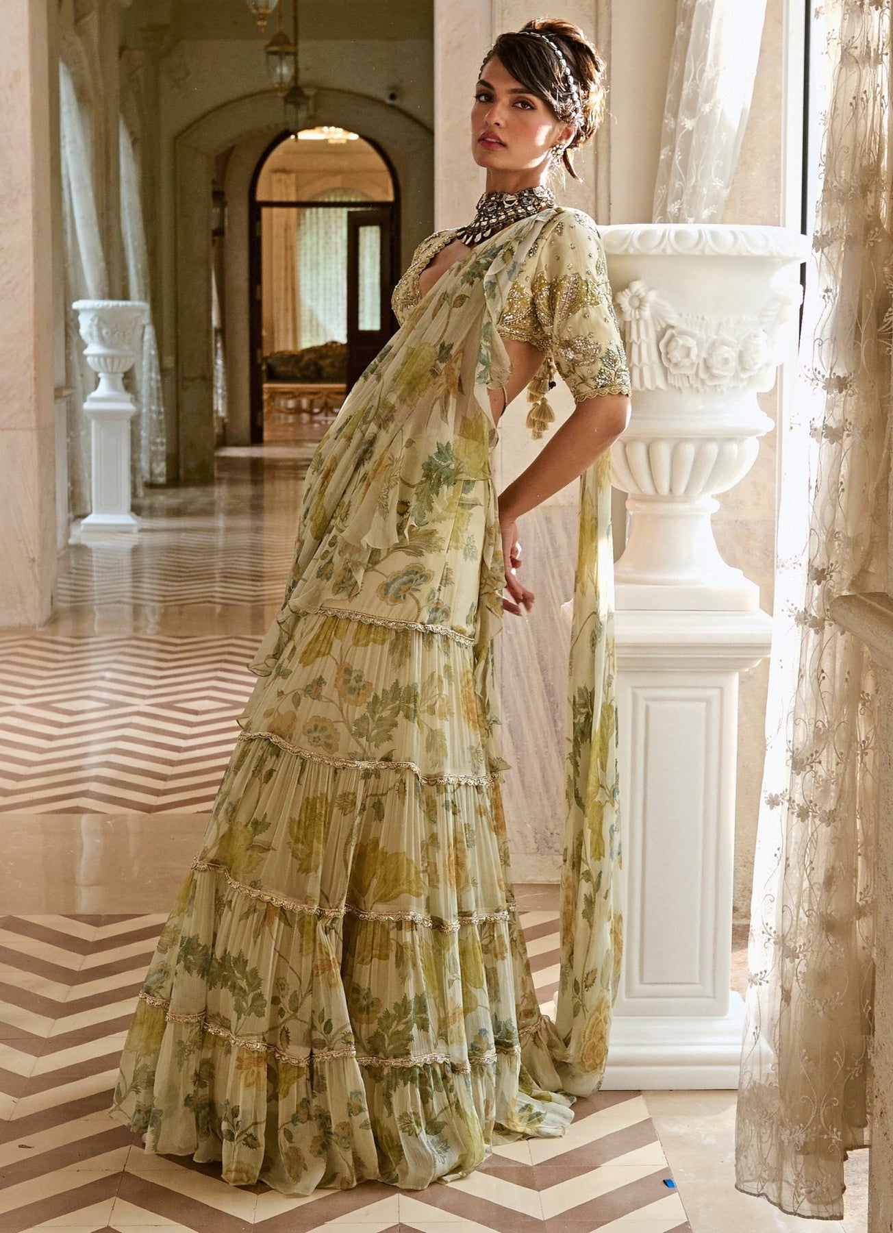 Perfect Pre-draped Saree for Wedding family for Mehendi and Sangeet.