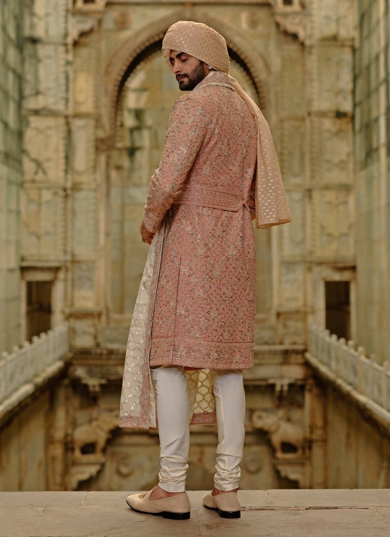 Pink and Beige Silk Sherwani Set Nitika Gujral - Men - Fabilicious Fashion