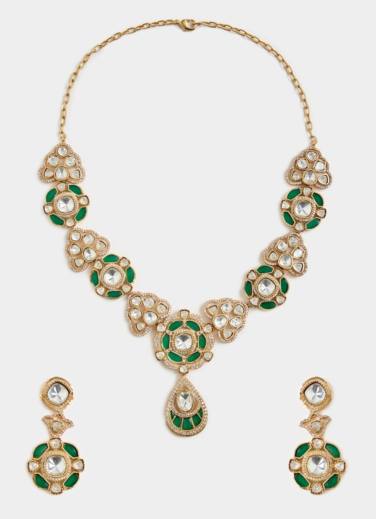 Gold And Emerald Green Kundan Necklace Set Vivinia By Vidhi Mehra - Fabilicious Fashion