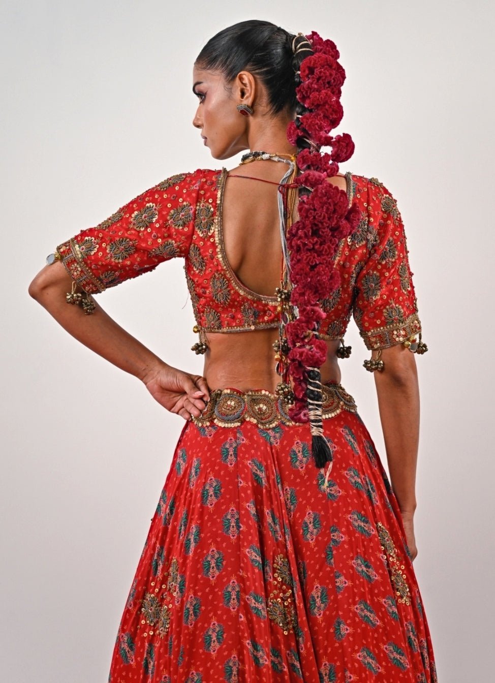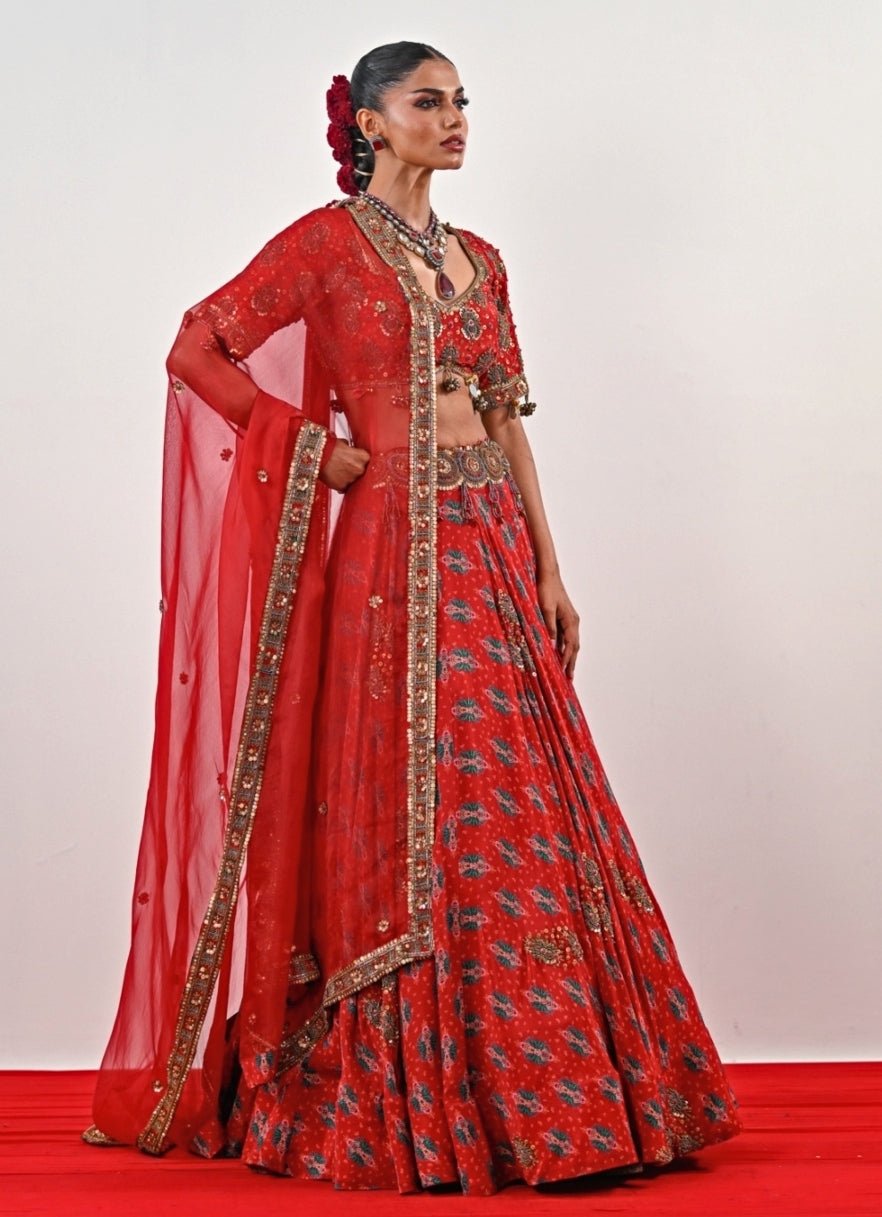 Red Printed Crepe Lehenga Set Juhi Bengani - Fabilicious Fashion