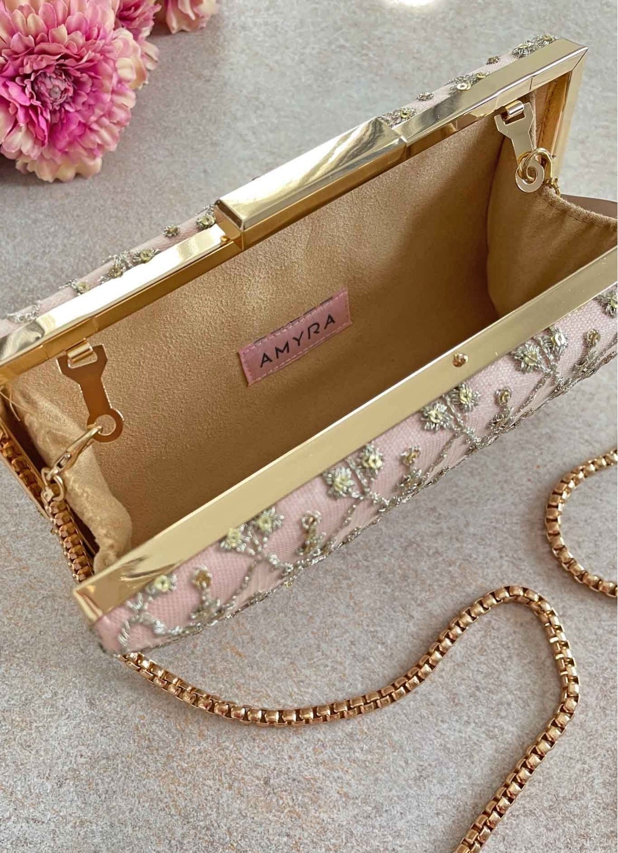 Baby Pink Embroidered Clutch AMYRA - Fabilicious Fashion