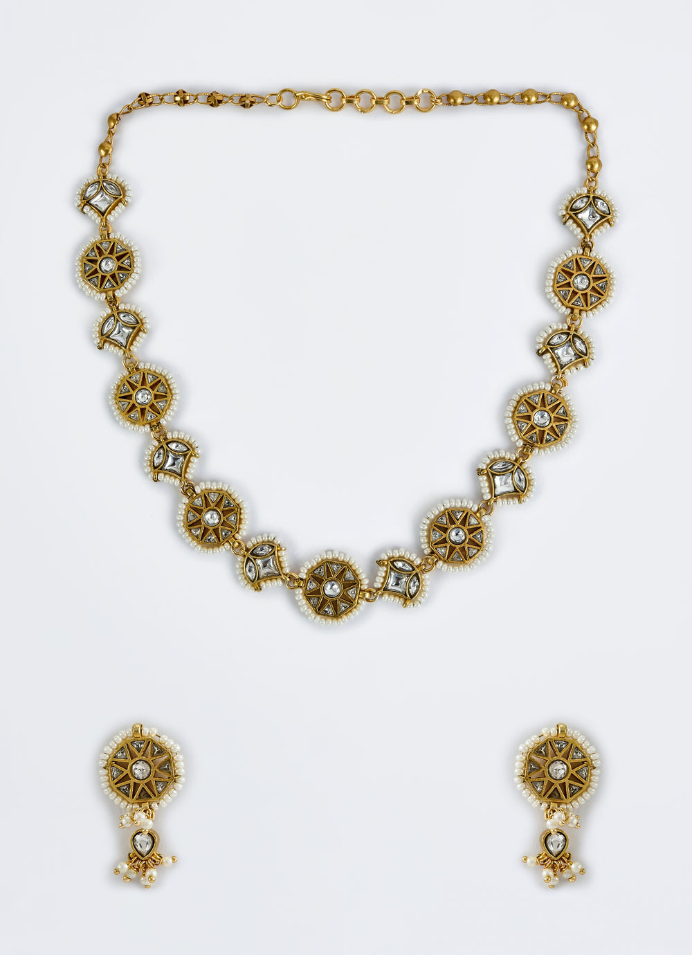 Gold Plated White Kundan And Polki Short Necklace Set