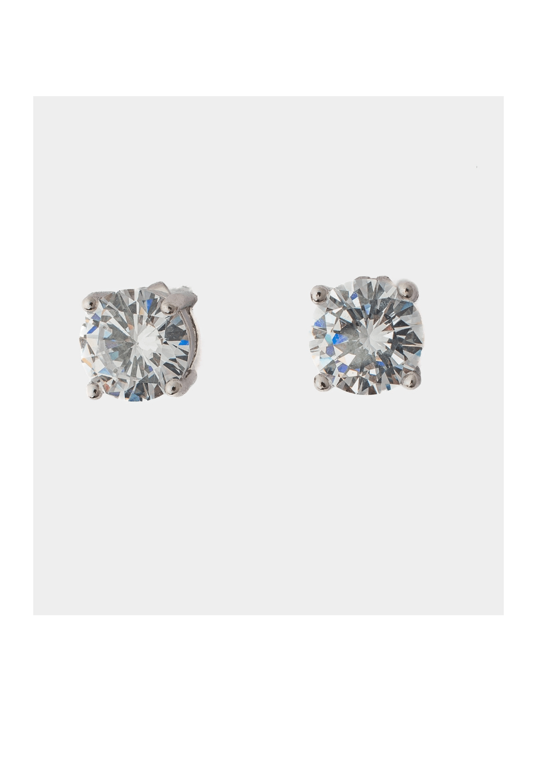 Silver Plated White Zircon Short Round Cut Stud Earrings