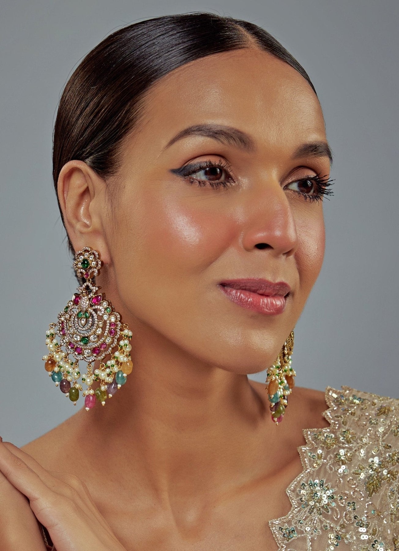 Gold Plated Multi Kundan Danglers Earrings Vivinia by Vidhi Mehra - Fabilicious Fashion