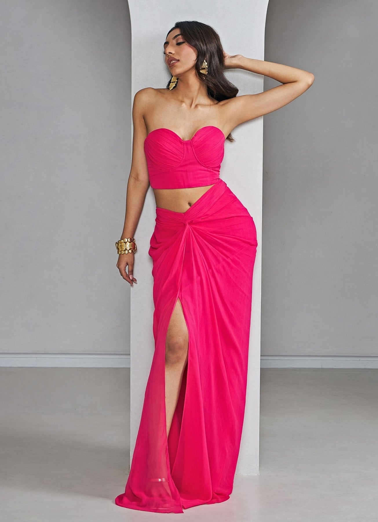 Rani Pink Bustier With Slit Knotted Skirt Set