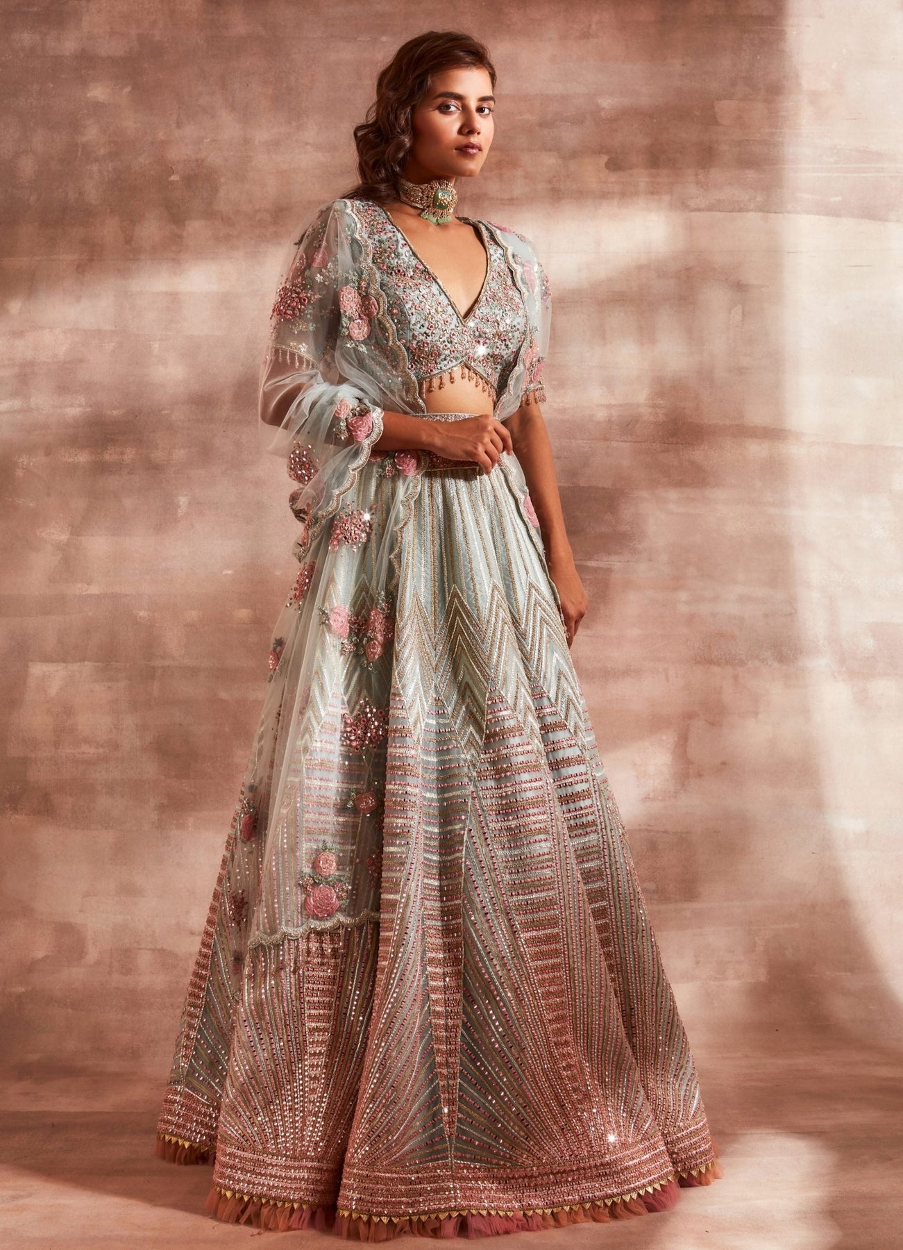 Other Details: Lining - Chroma Silk, Fastening- Concealed Zip at Blouse and Lehenga