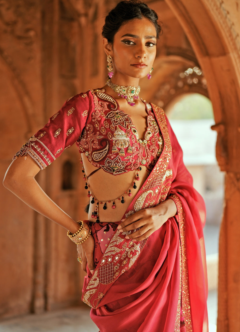 Red Sequin Embroidered Pre-Stitched Georgette Saree