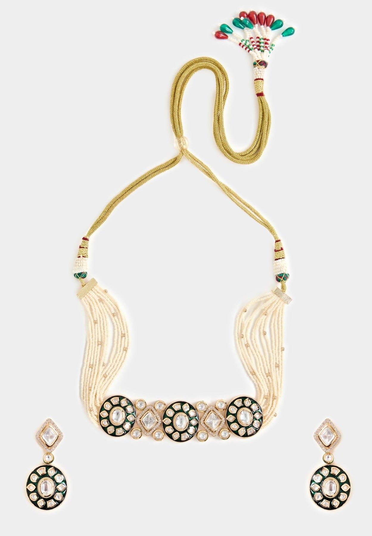 Black And White Stone Pearl Choker Necklace Set Vivinia By Vidhi Mehra - Fabilicious Fashion